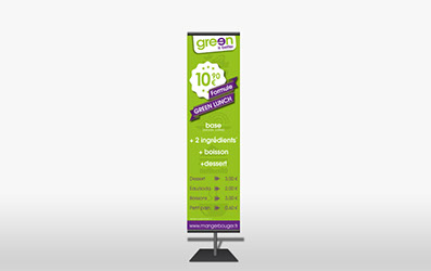 Direction artistique, animation, totem, roll-up, affichage, identité visuelle, design, print.